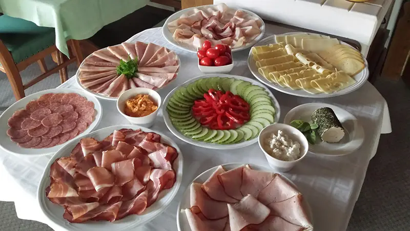 Morgens verwöhnen wir unsere Gäste mit einem reichhaltigen Frühstücksbuffet. Auch Vegetarier und Veganer finden bei uns eine große Auswahl an Köstlichkeiten. Freuen Sie sich auf frisches Brot und Gebäck, heiße Getränke, verschiedene Säfte, Wurst , Käse, Müsli und Joghurt und einiges mehr!