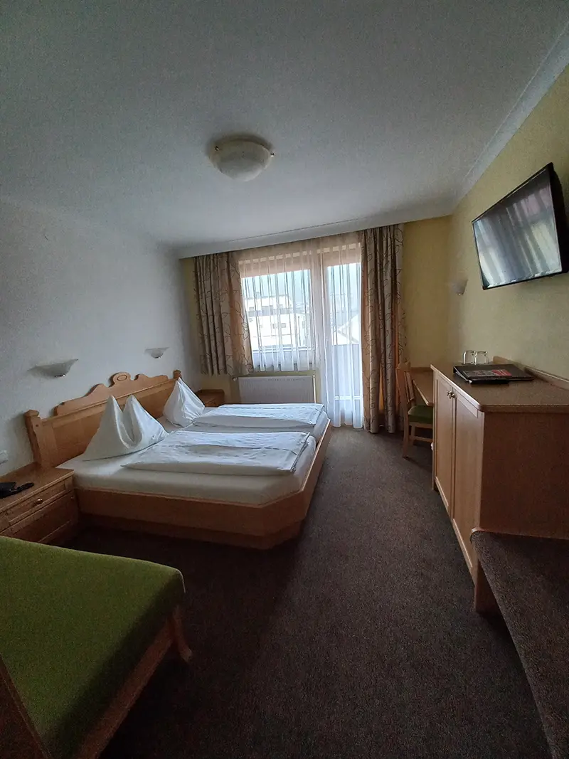 Unsere fünf Zimmer verfügen über ein Doppelbett, ein Bad mit Dusche/WC, Fernseher, Telefon, kostenlosen W-LAN-Anschluss sowie einen Panoramabalkon mit Tischen, Stühlen und Bergblick. Als Doppelzimmer angelegt können sie auch zur Einzelnutzung gebucht werden. Die meisten Zimmer verfügen noch über ein zusätzliches Sofa und in einem der Zimmer findet sogar eine größere Familie Platz. Unsere Betten verfügen über eine Hygieneausstattung